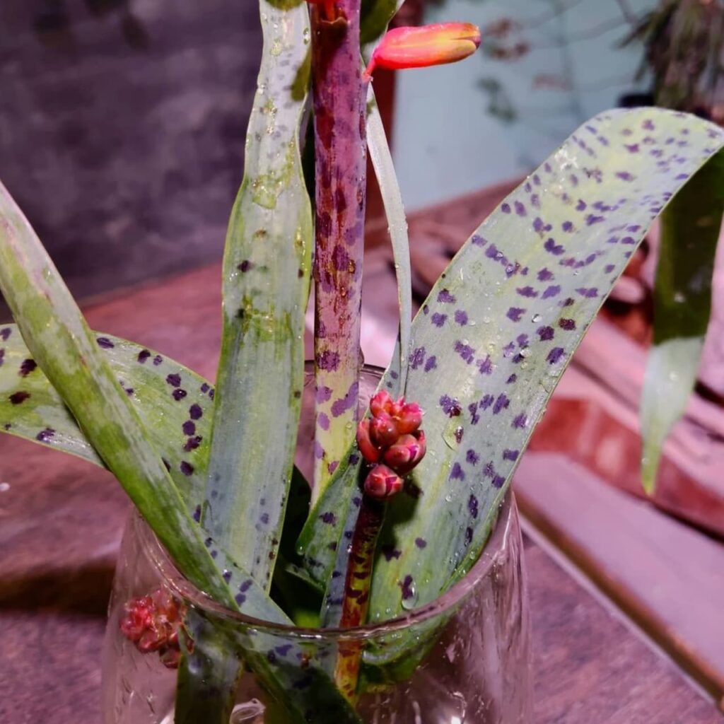 ヒョウ柄のような斑点が葉にも軸にもある、見た目は少々毒々しいお花です!