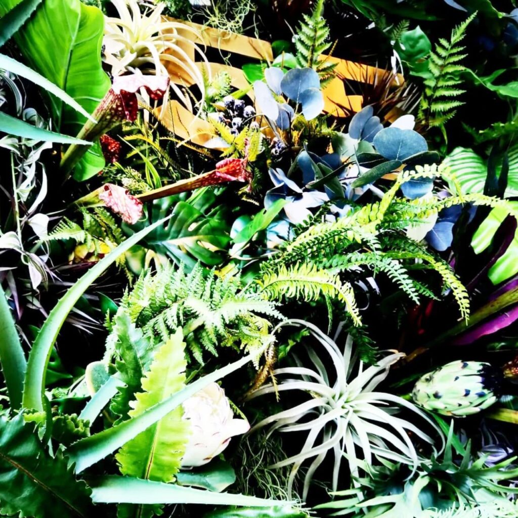 カフェの壁面緑化をアーティフィシャルフラワー(artificial flower)で作らせていただきました。