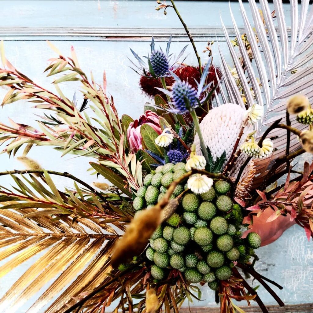 バンクシアやプロテアのワイルドフラワーをメインに、お祝い感とワイルドなカッコよさを重ね合わせたブーケをイメージし作らせていただいたところ、喜んでいただけてひと安心でした😄