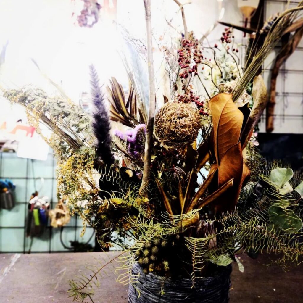 おしゃれなフラワーインテリア、ワイルドフラワーや流木を取り入れたドライフラワーアレンジメントやスワッグをご提供しています。