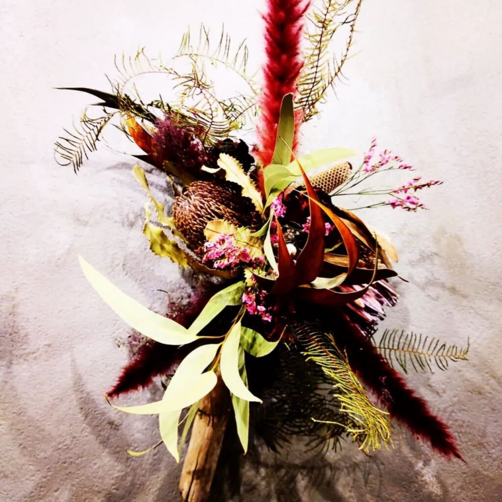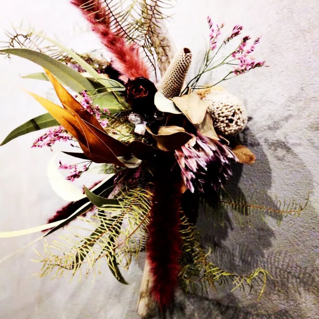 おしゃれなフラワーインテリア、ワイルドフラワーや流木を取り入れたドライフラワーアレンジメントやスワッグをご提供しています。