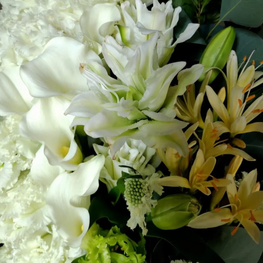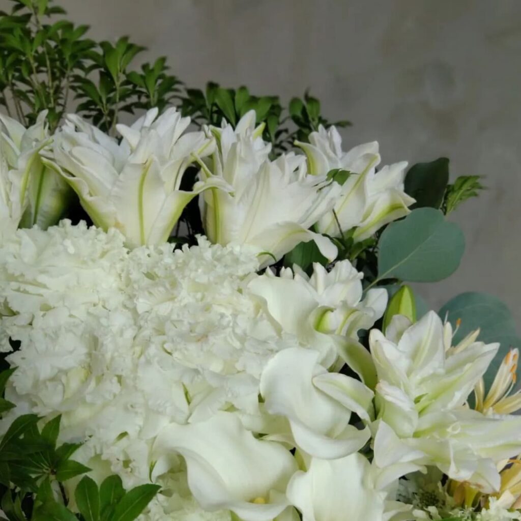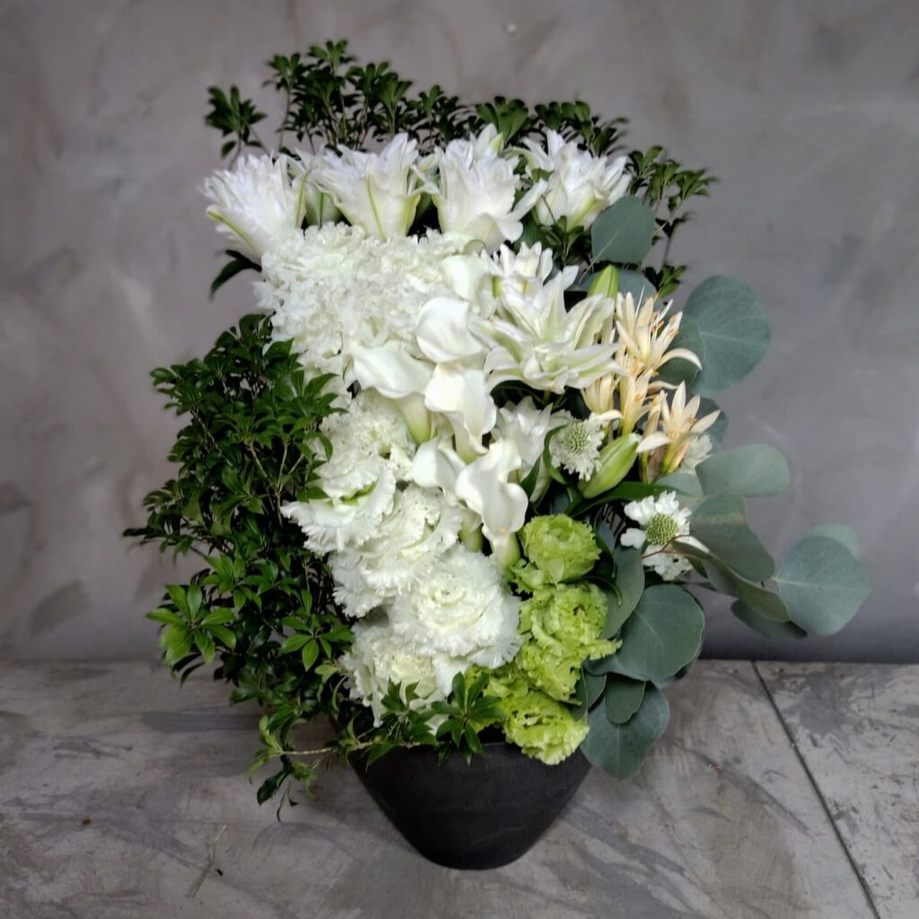 本日は、純白のお供えアレンジメントをご紹介いたします。