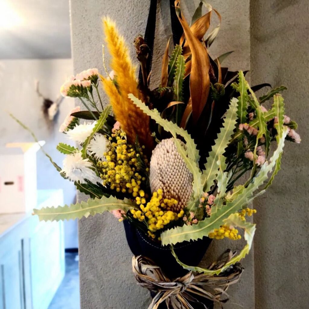 おしゃれなフラワーインテリア、ワイルドフラワーや流木を取り入れたドライフラワーアレンジメントやスワッグをご提供しています。