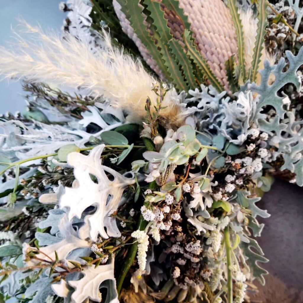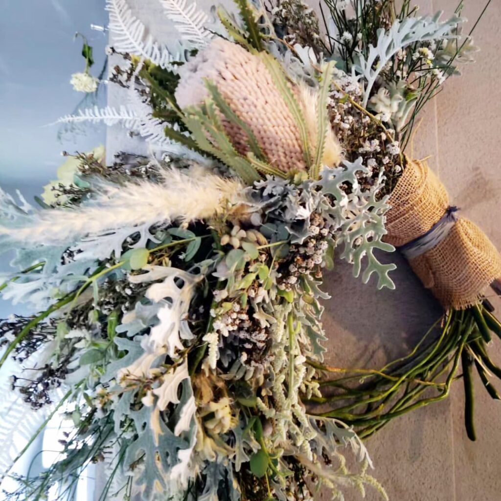 おしゃれなフラワーインテリア、ワイルドフラワーや流木を取り入れたドライフラワーアレンジメントやスワッグをご提供しています。