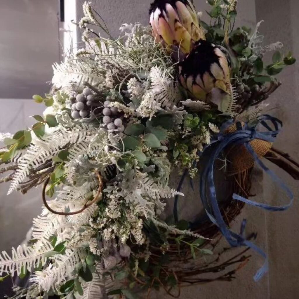 おしゃれなフラワーインテリア、ワイルドフラワーや流木を取り入れたドライフラワーアレンジメントやスワッグをご提供しています。
