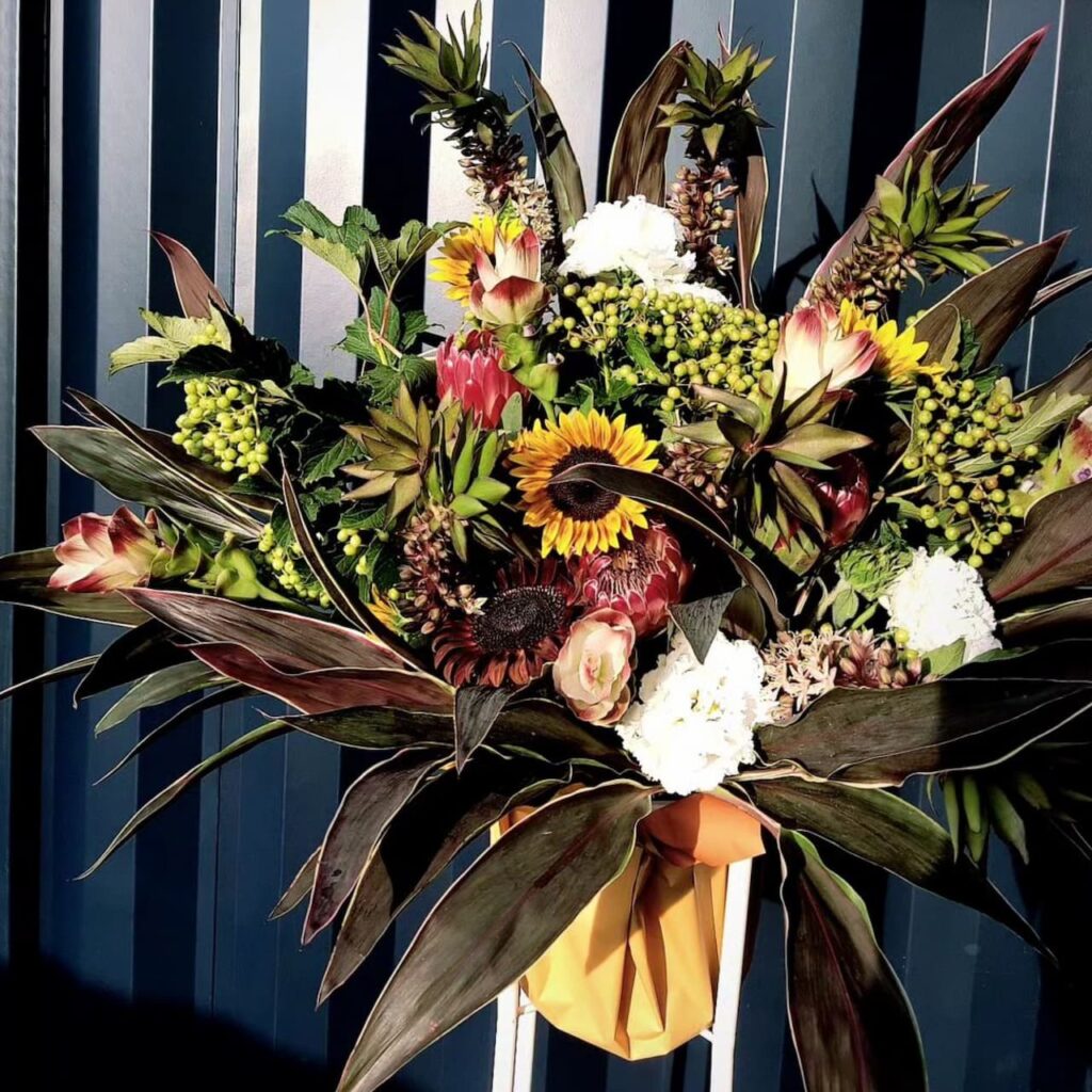 真夏の開店のお祝い、ということで夏っぽいお花で作成しました🌻