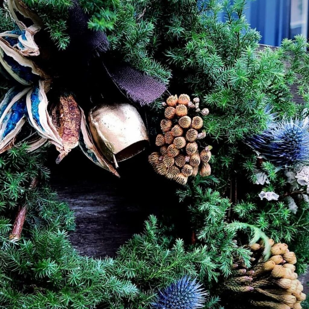 クリスマスには欠かせないリース。シミズガーデンのリースはフレッシュリースです。