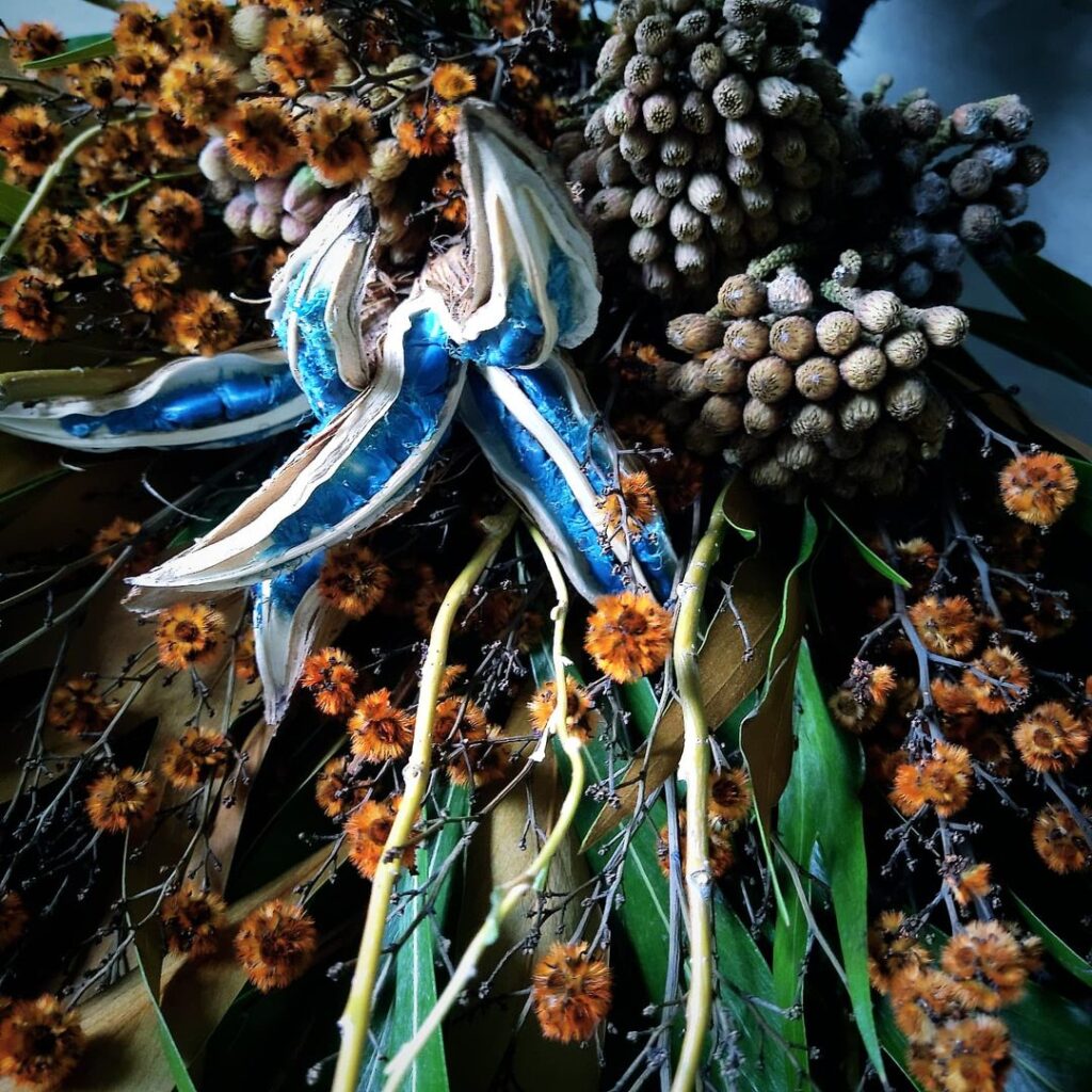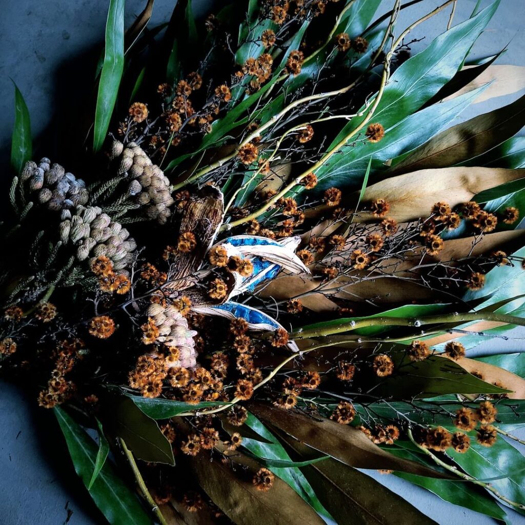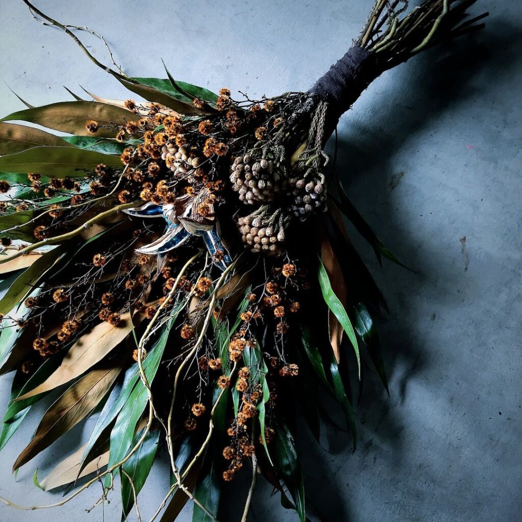 お祝い用にフレッシュ花材とドライフラワーを合わせてスワッグを作らせてもらいました!