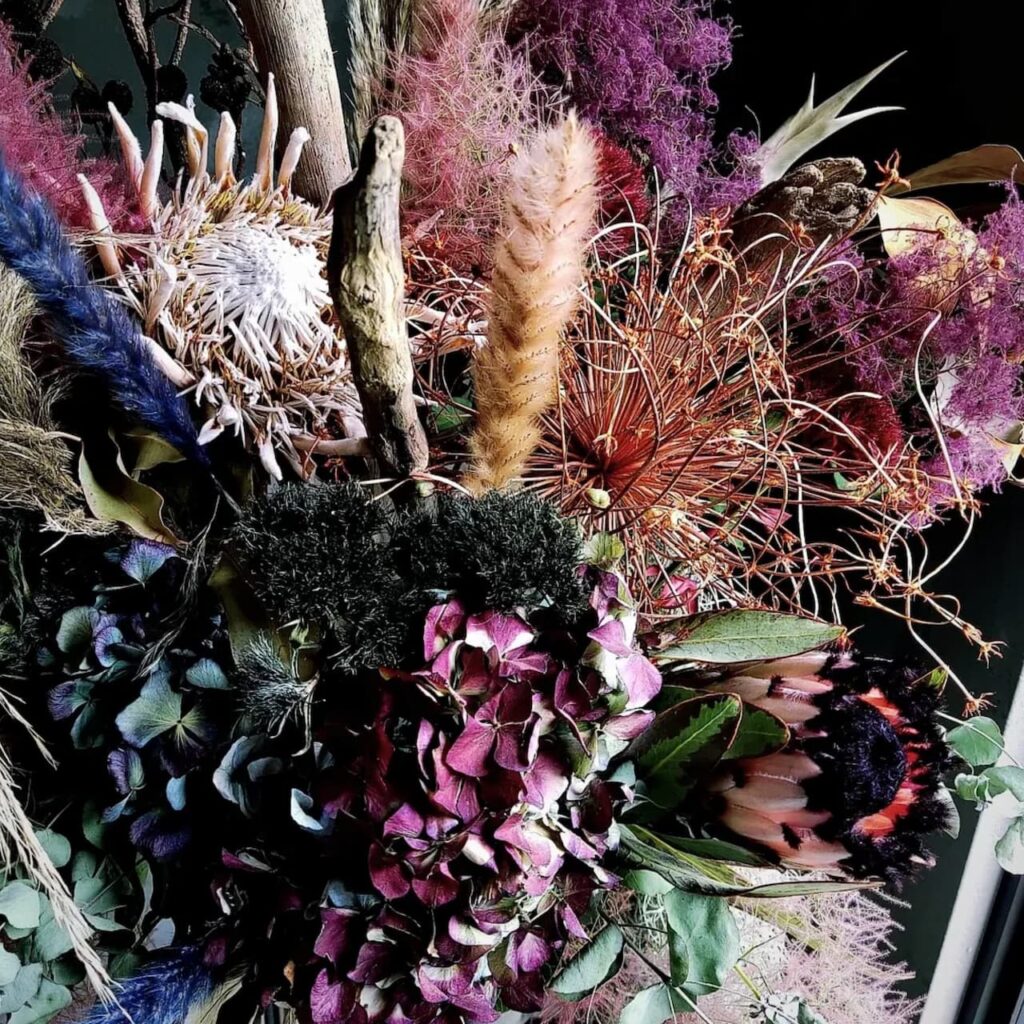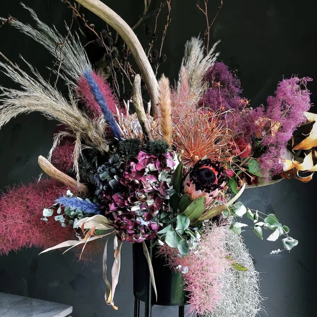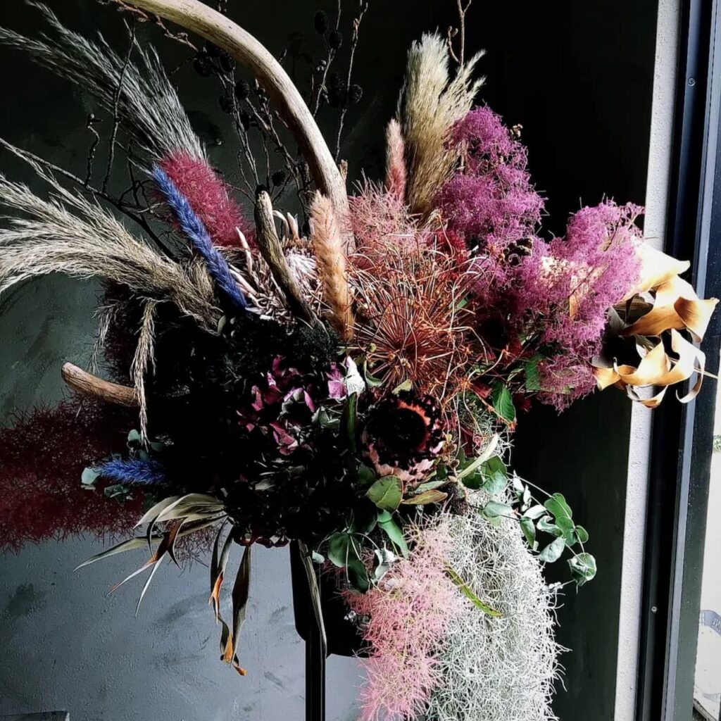 おしゃれなフラワーインテリア、ワイルドフラワーや流木を取り入れたドライフラワーアレンジメントやスワッグをご提供しています。