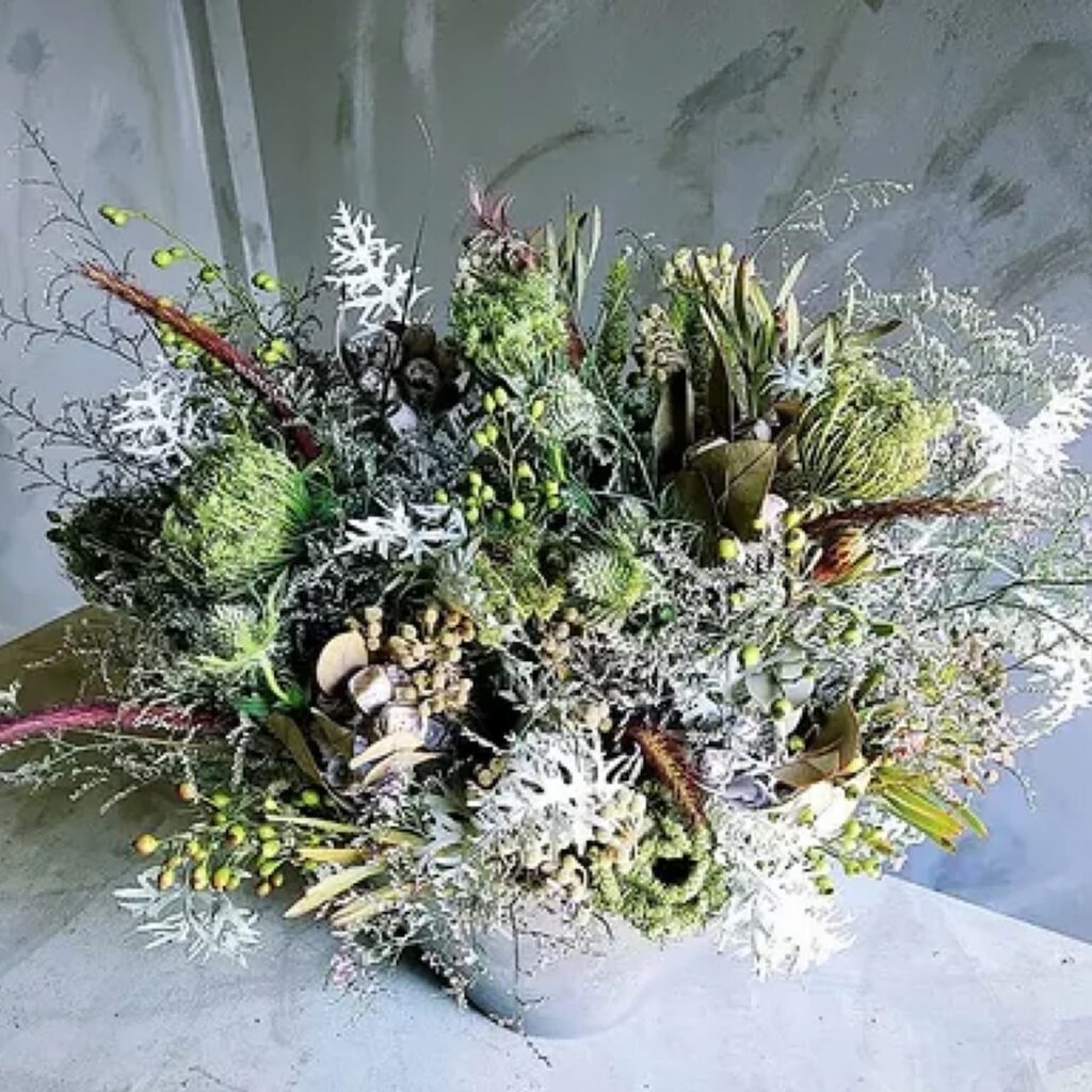 おしゃれなフラワーインテリア、ワイルドフラワーや流木を取り入れたドライフラワーアレンジメントやスワッグをご提供しています。