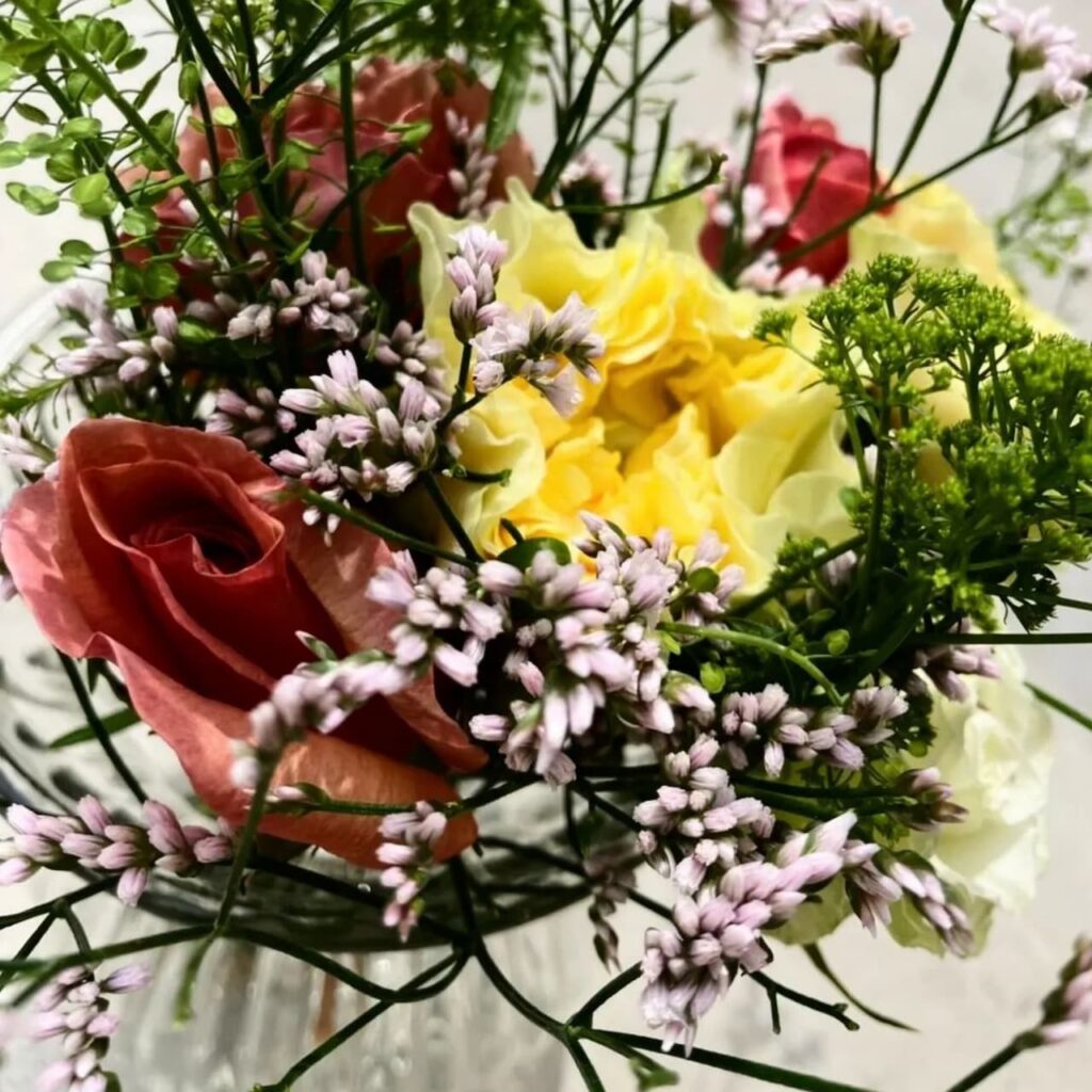 2022年5月のお花は、5月はバラの季節ということで、数種類のバラを束ねたブーケでした!