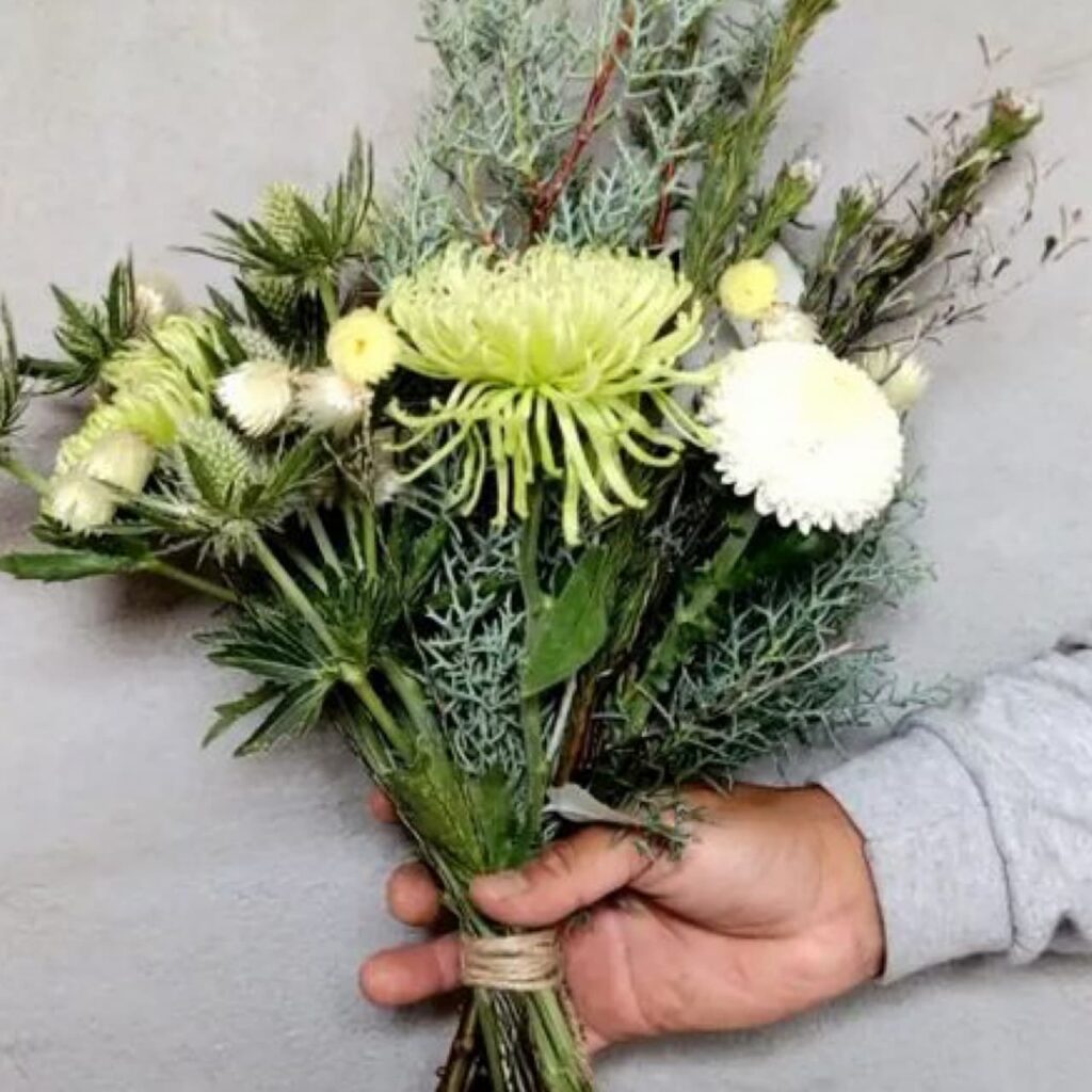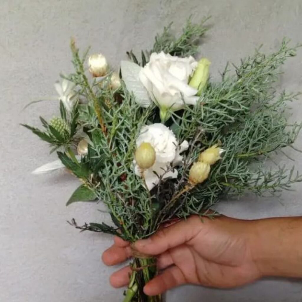 これから訪れる冬が楽しみになるような、クリーンで爽やかなブーケになりました。