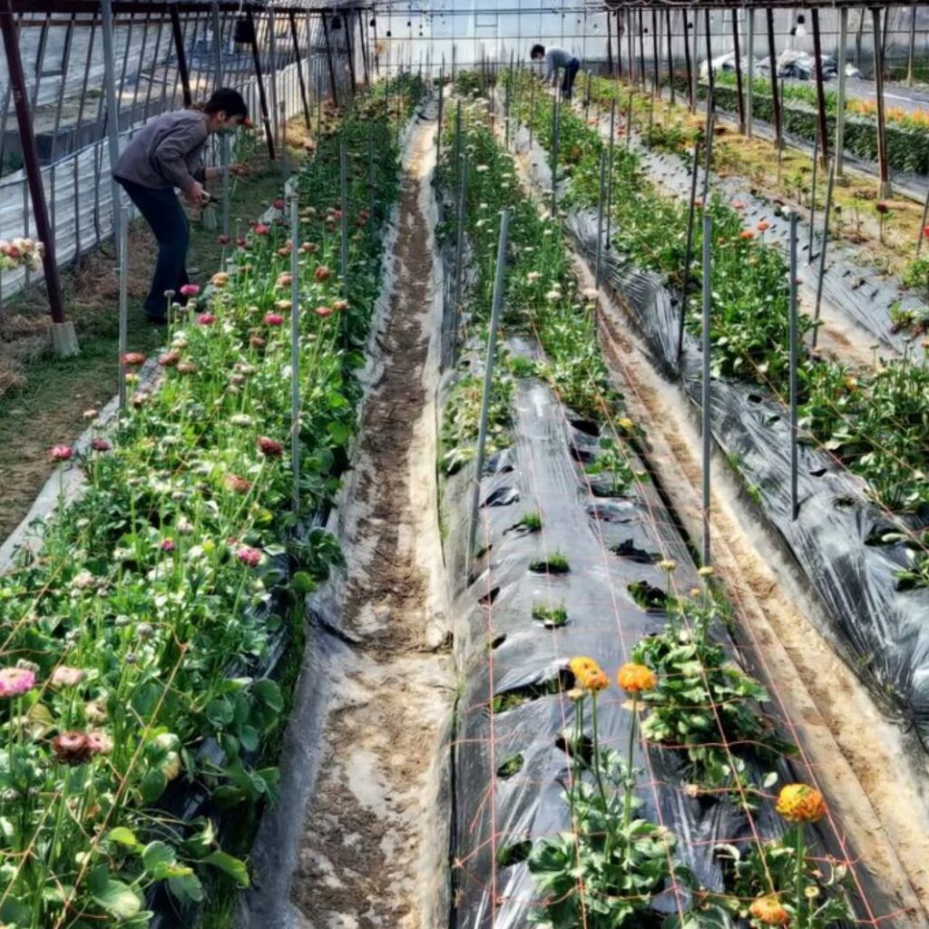 最盛期のポンポンラナンキュラス6種、アネモネ2種の中から好きなお花を選んで切ってもらいます。