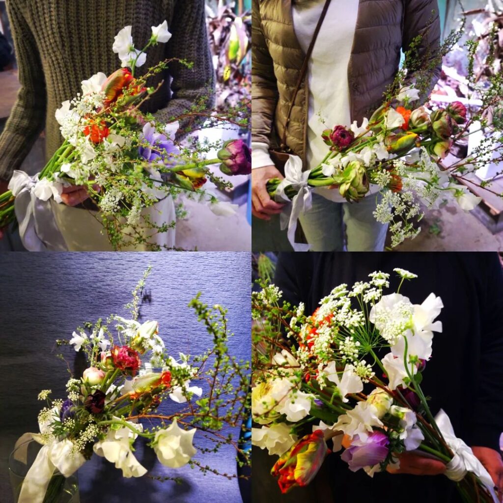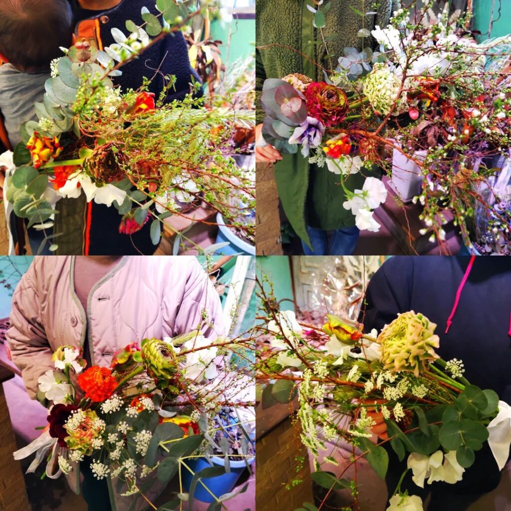 まずは農園で花摘みをしていただき、そのお花を使ってブーケを束ねていただきました。