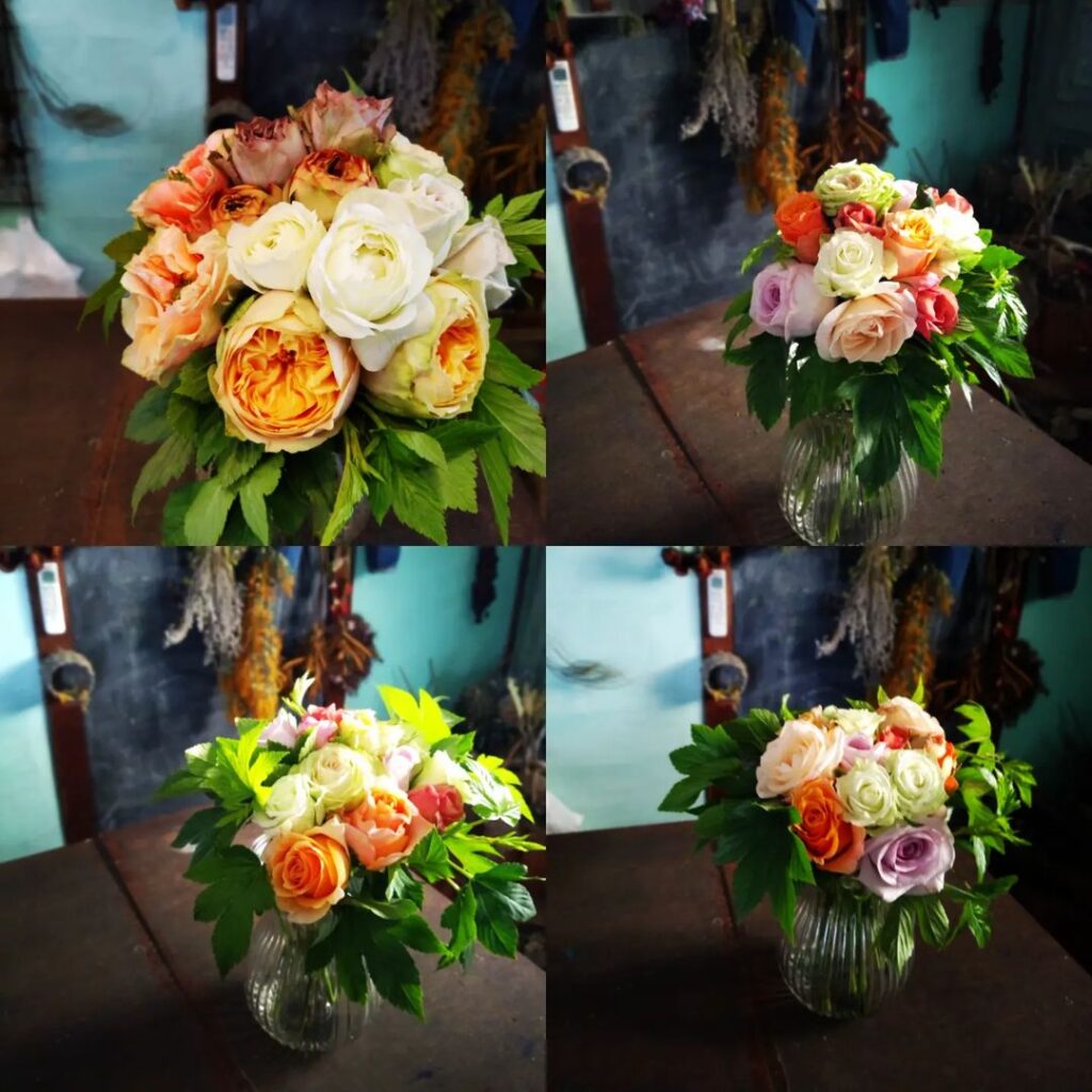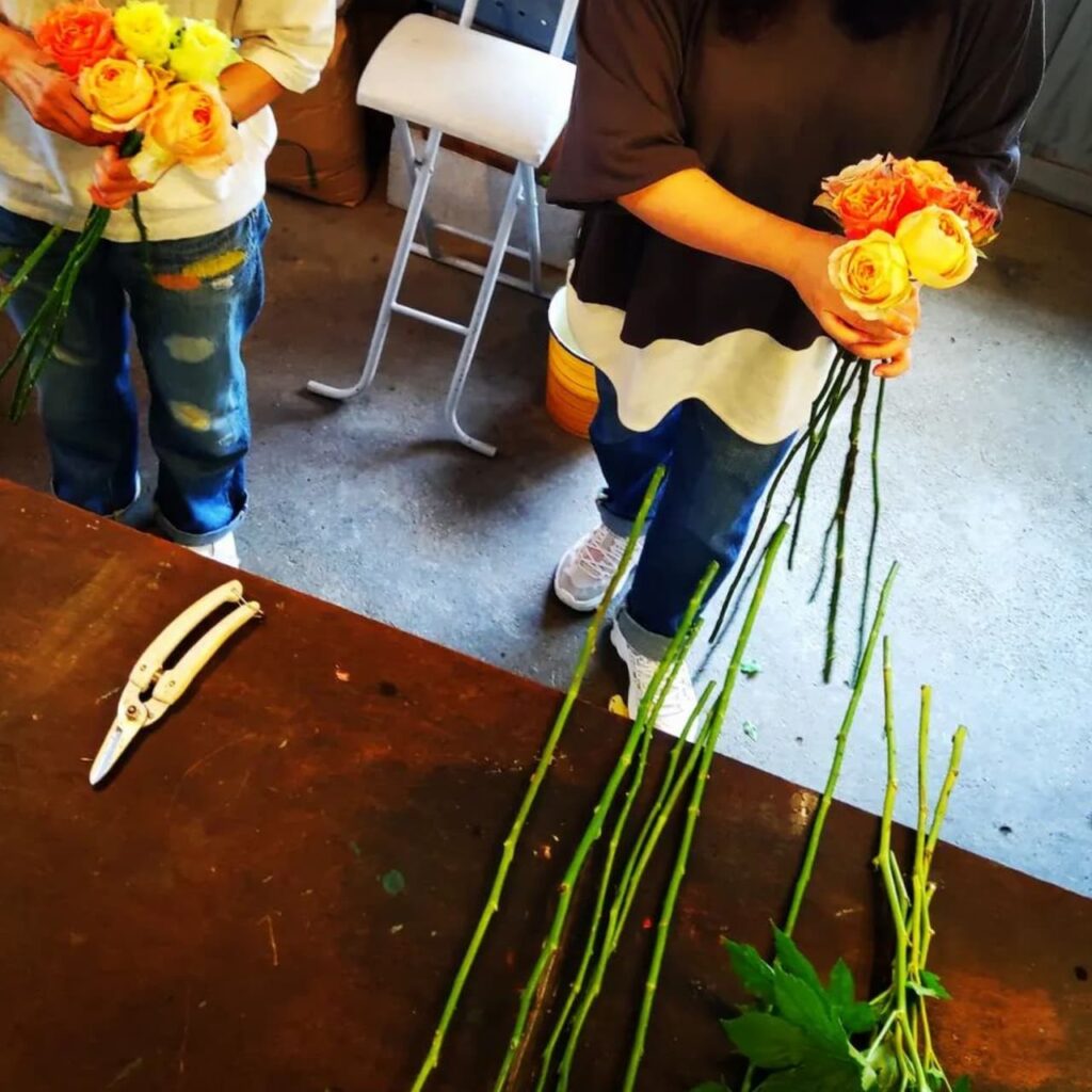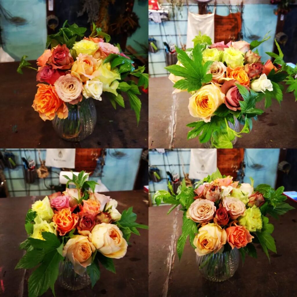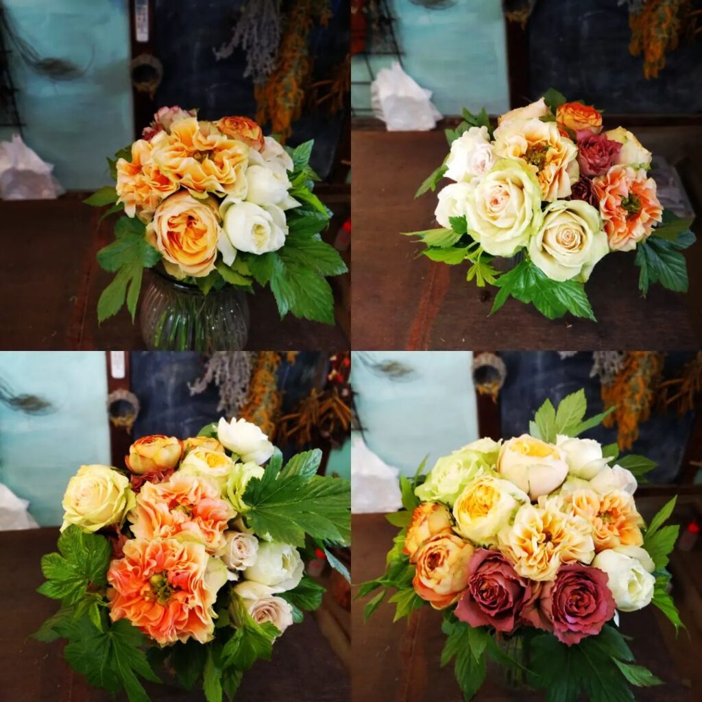 トゲの扱いもあり少し痛いことにもなりましたが、シミズガーデンらしくない😂エレガントなブーケを作っていただけました!