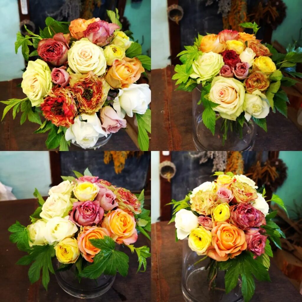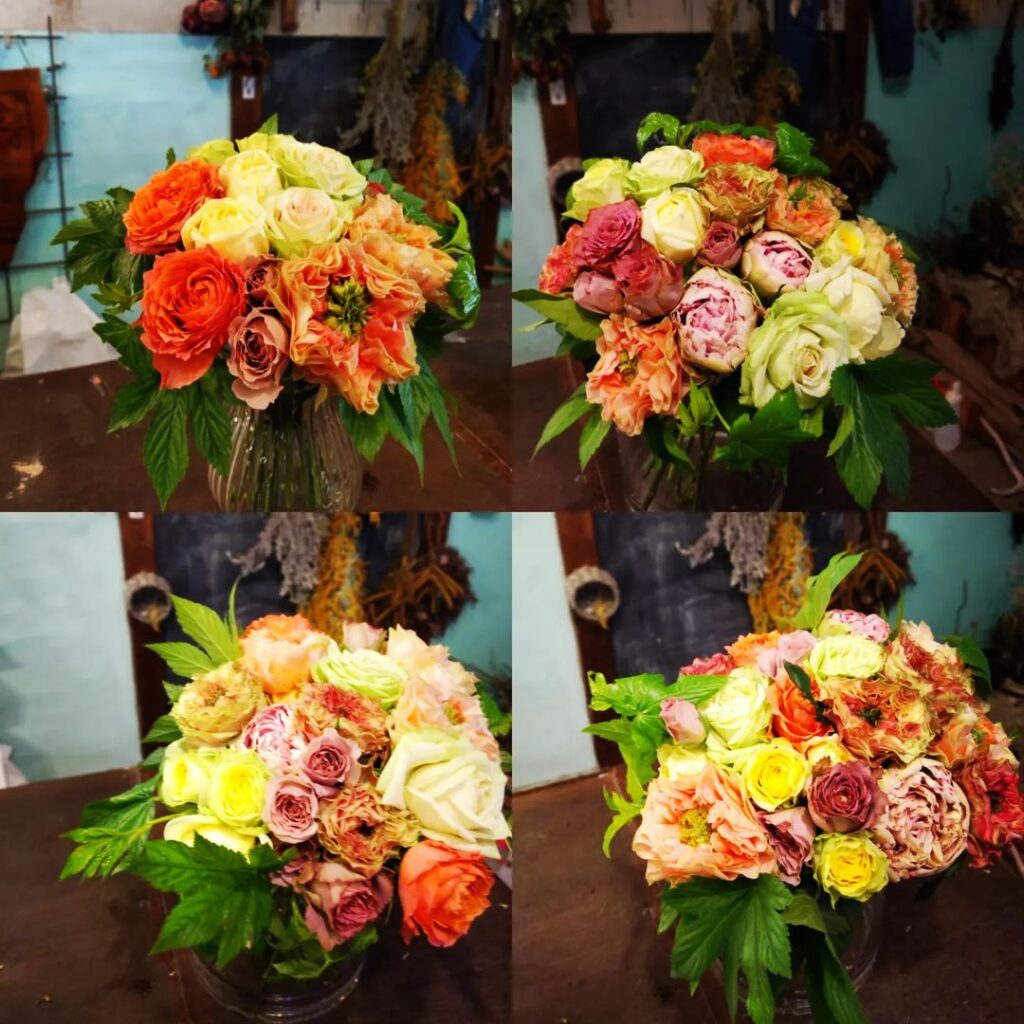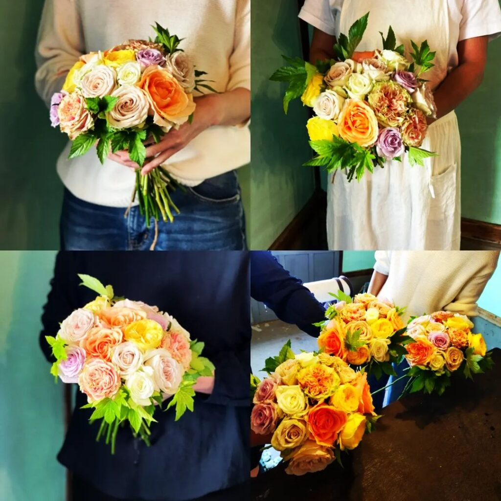 皆さま素敵なブーケを束ねておられ、シミズガーデンらしからぬ😂かわいいエレガントなバラのブーケですね、とおっしゃっていました🤣