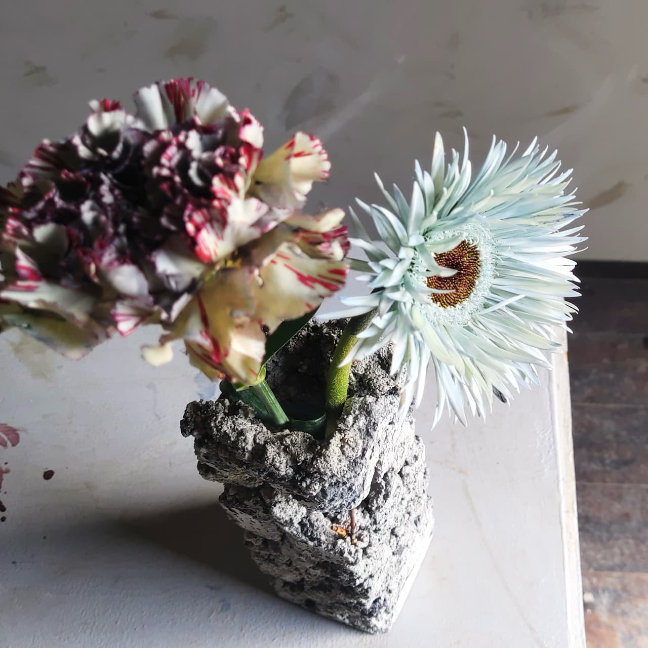 shimizu garden こだわりのおしゃれなモルタル製フラワーベースに