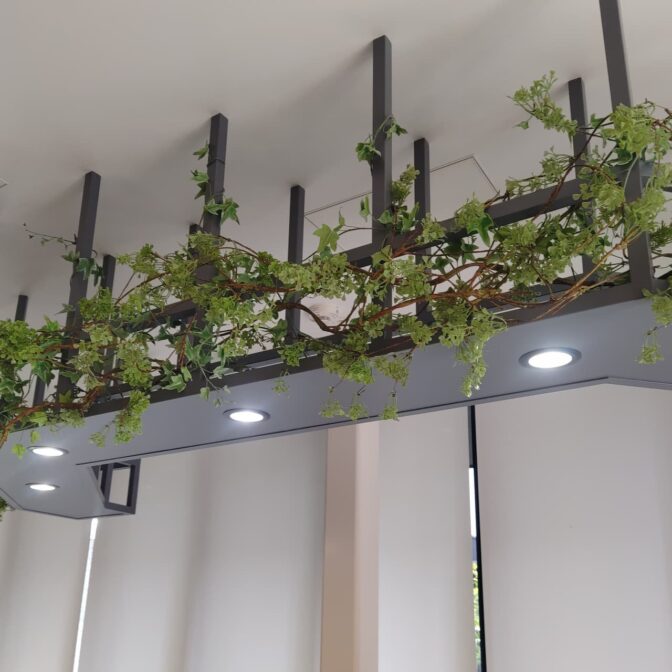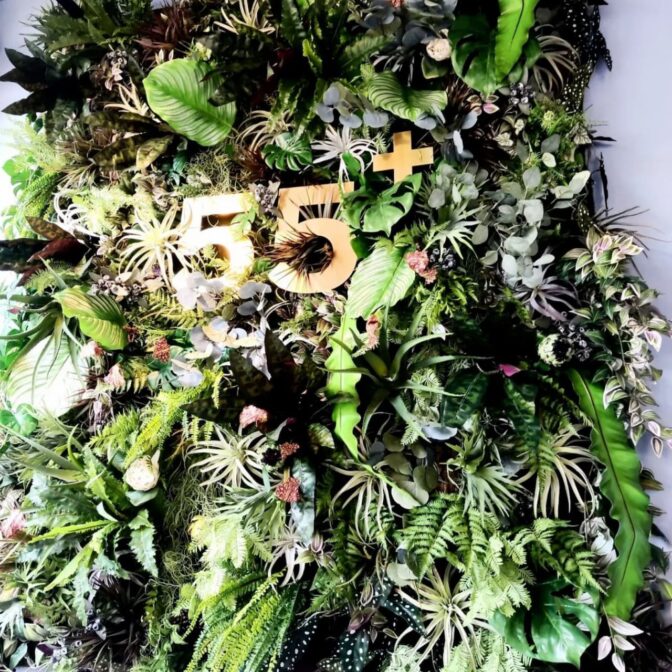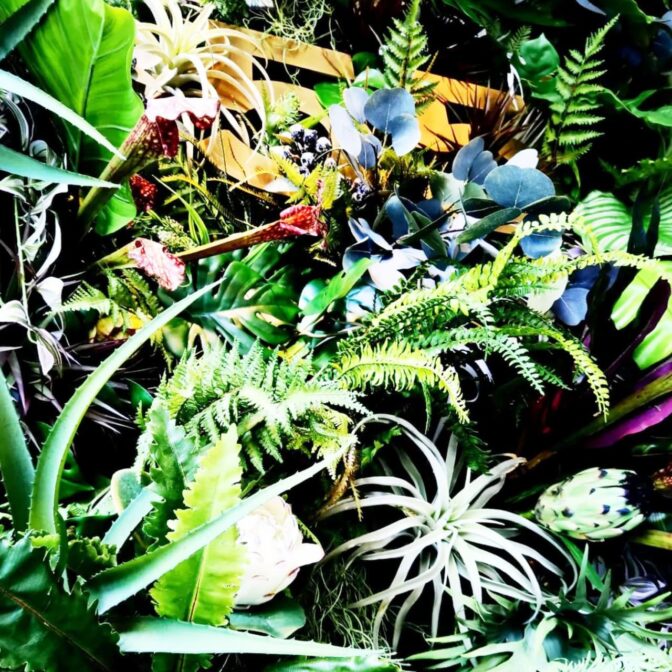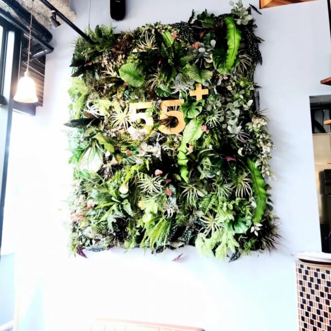 ・アーティフィシャルフラワーを使った店舗壁面オブジェ