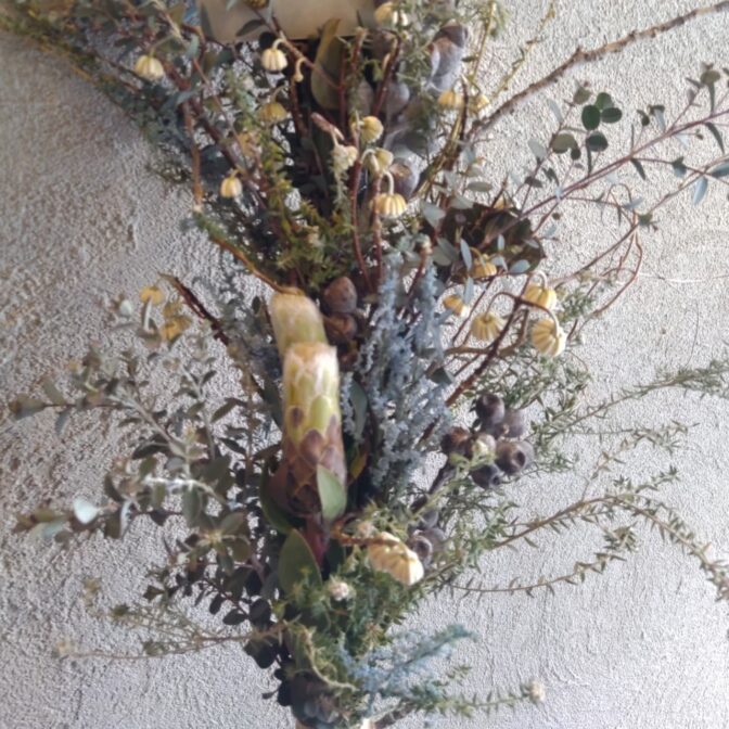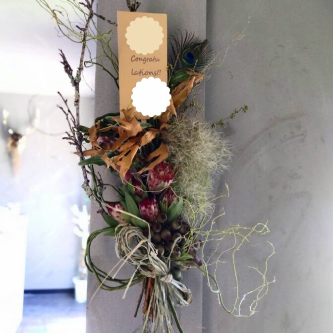 おしゃれなフラワーインテリア、ワイルドフラワーや流木を取り入れたドライフラワーアレンジメントやスワッグをご提供しています。