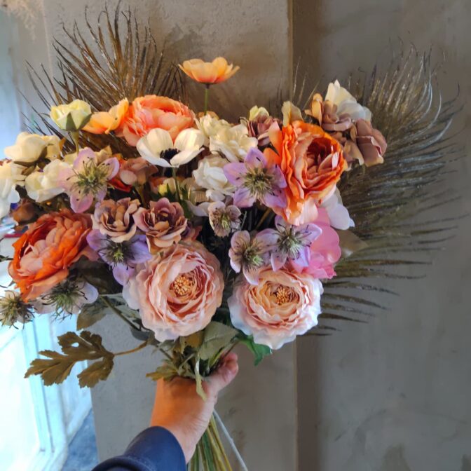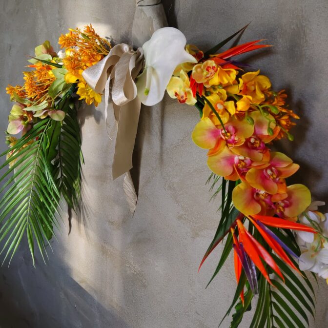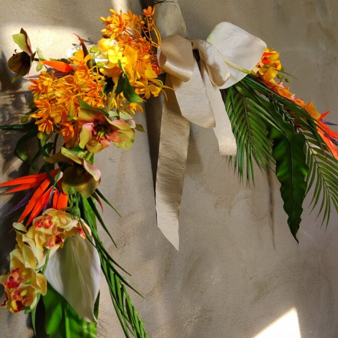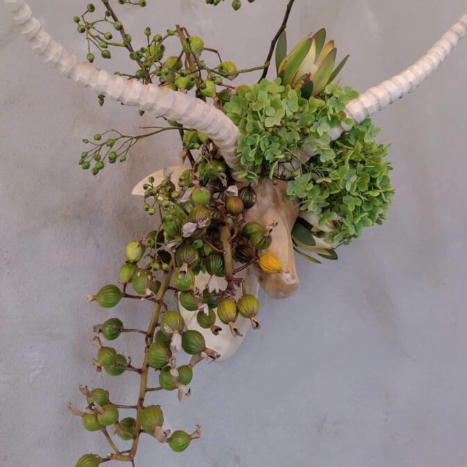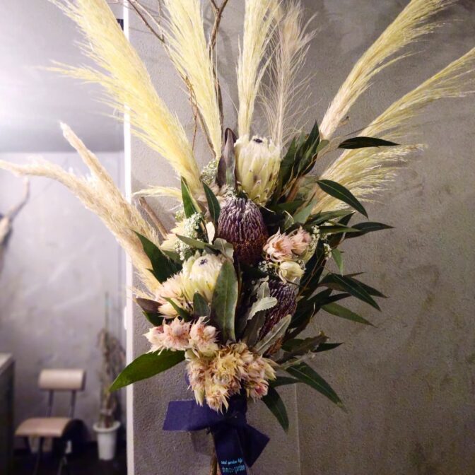 ブーケやリース、スワッグなどの既存の形にとらわれず、より自由に作り上げるフラワーオブジェです。