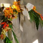・お客様のお持ちの素材にフレッシュフラワーを組み合わせた壁面オブジェ