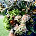 フレッシュな頃はもちろん、ドライになってからも色が残るような花材をセレクトして束ねます。