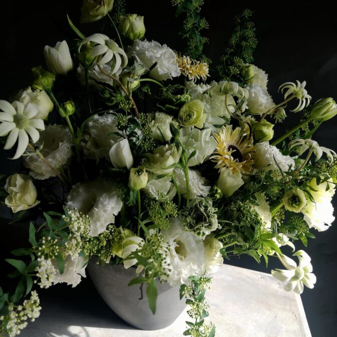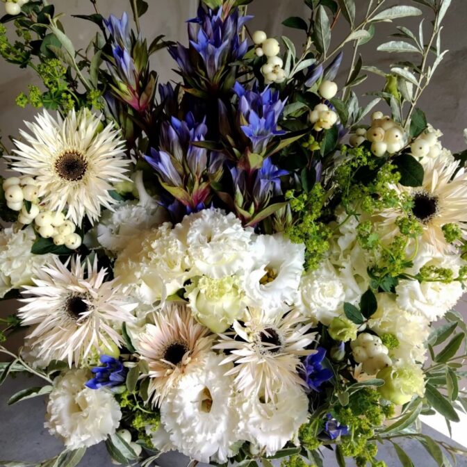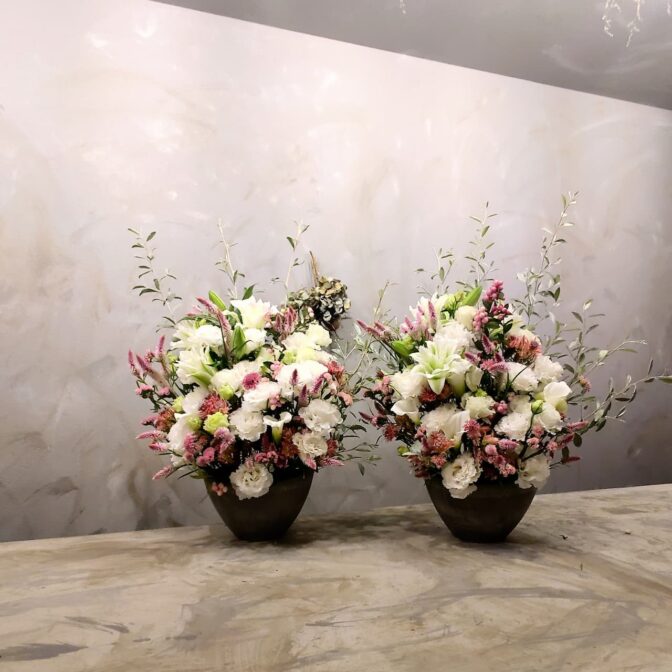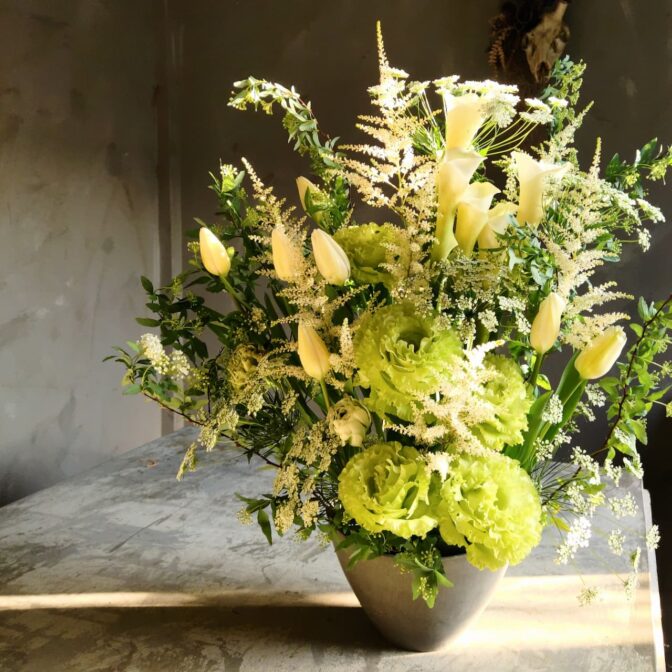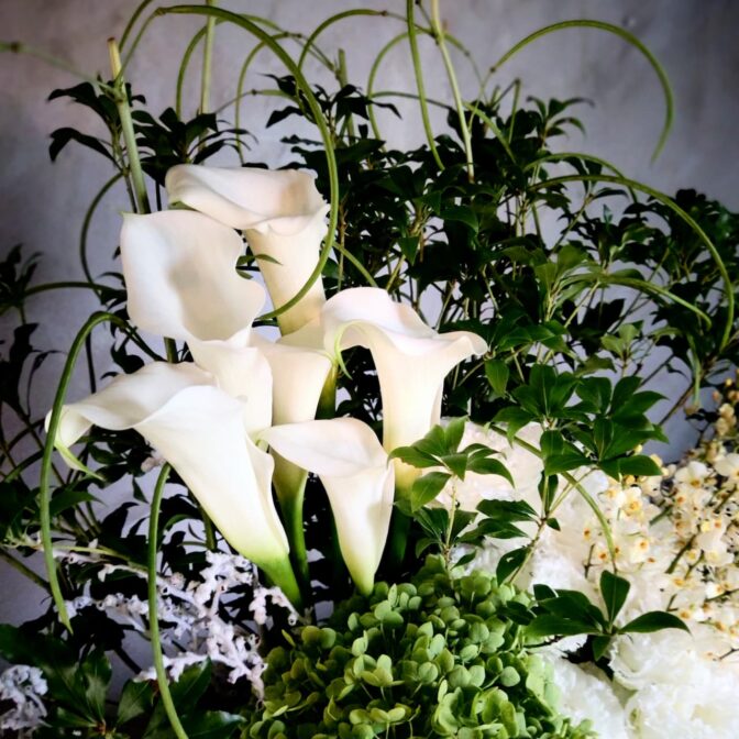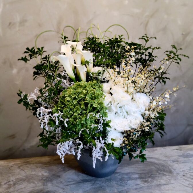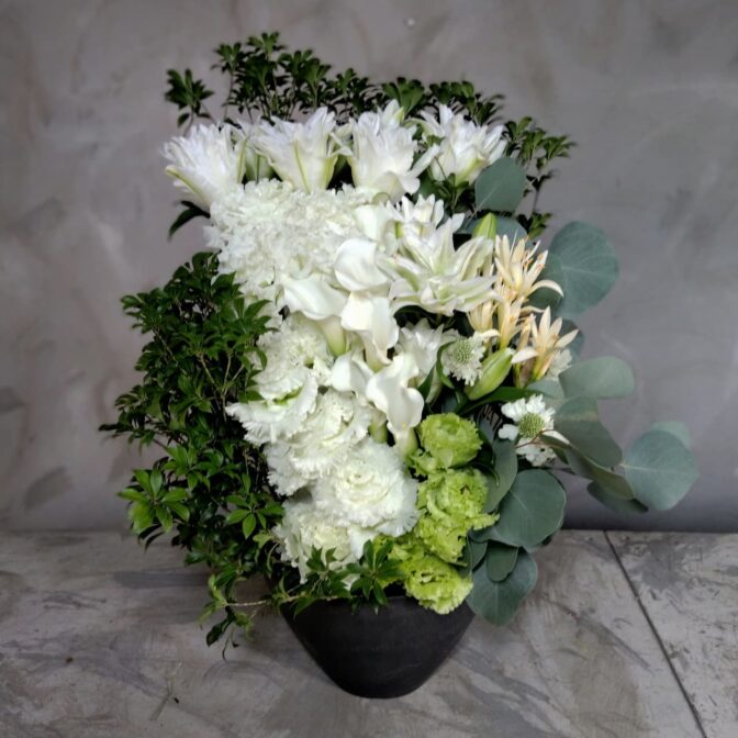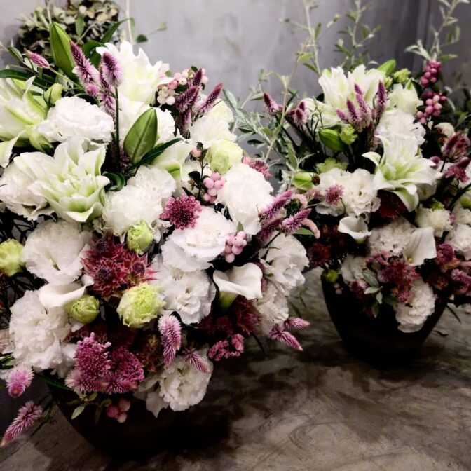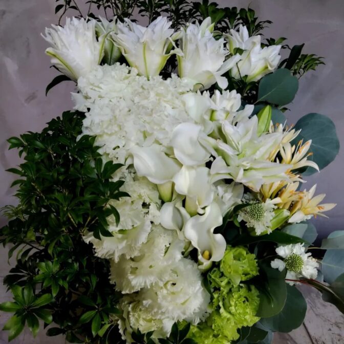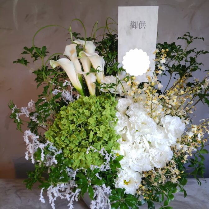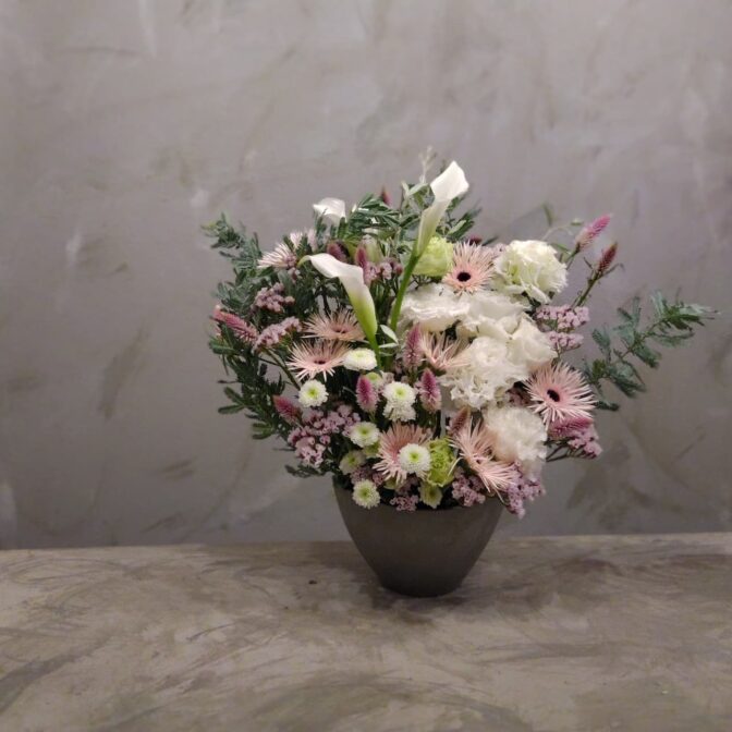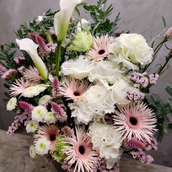 淡くやさしい色合いのお花、故人がお好きだったお花を合わせたアレンジメントも好ましいです。