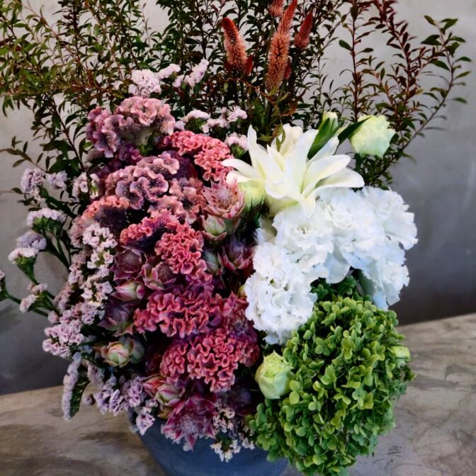 ■画像はイメージとなり、同金額でおつくりしたお祝いアレンジメントの画像も掲載しております。花材によりボリュームは前後します。