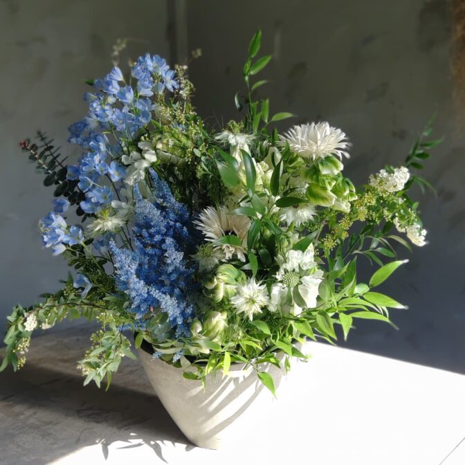 淡くやさしい色合いのお花、故人がお好きだったお花を合わせたアレンジメントも好ましいです。