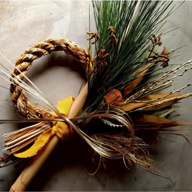 東大阪産の天然藁を使って、自分だけの縁起の良いオリジナルしめ縄に仕上げます。