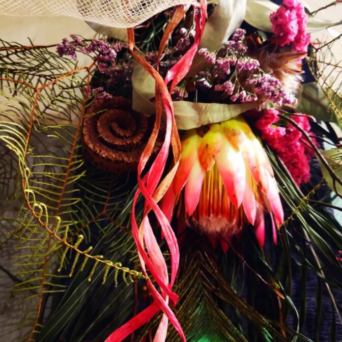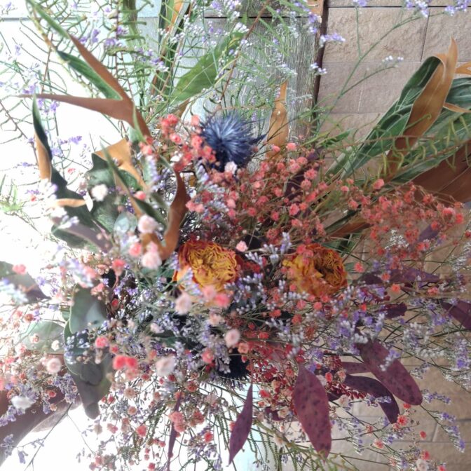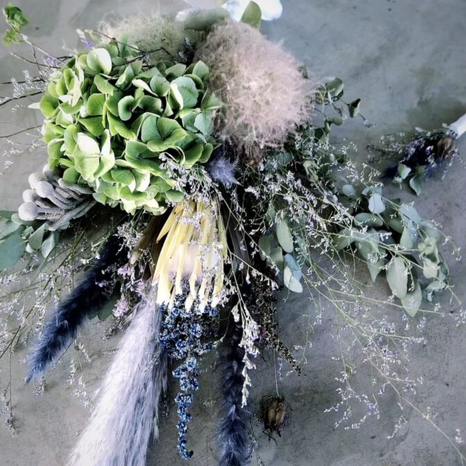 おしゃれなフラワーインテリア、ワイルドフラワーや流木を取り入れたドライフラワーアレンジメントやスワッグをご提供しています。