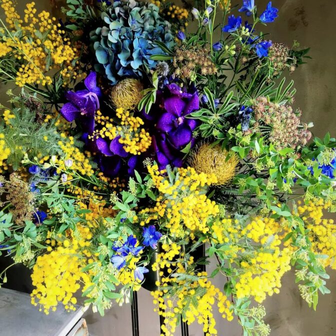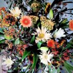 自家農園栽培のお花や季節のお花などを組み合わせて華やかなスタンドフラワーに仕上げます。